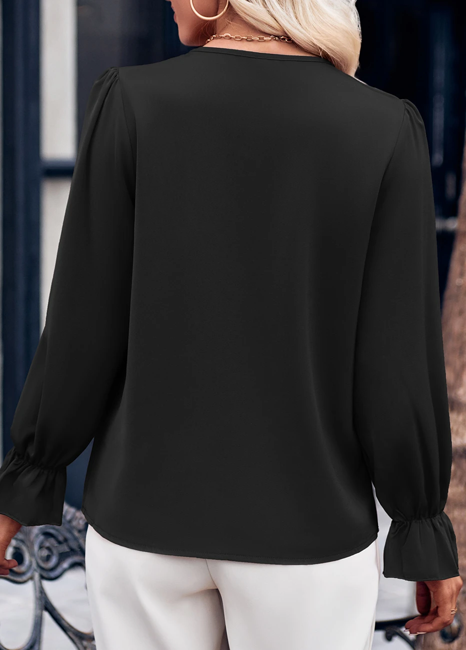 Be the first to review “Black Patchwork Long Sleeve V Neck Blouse” Cancel reply