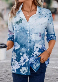 Be the first to review “Blue Button Floral Print Long Sleeve Blouse” Cancel reply