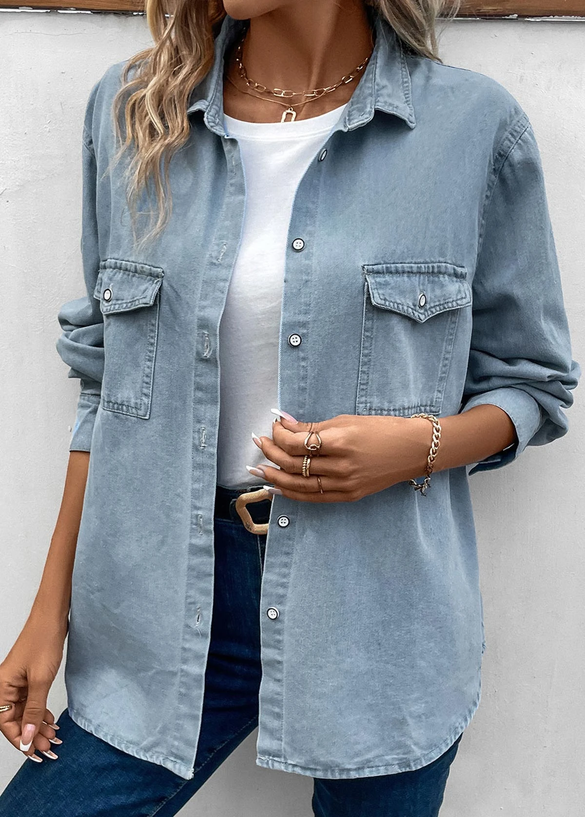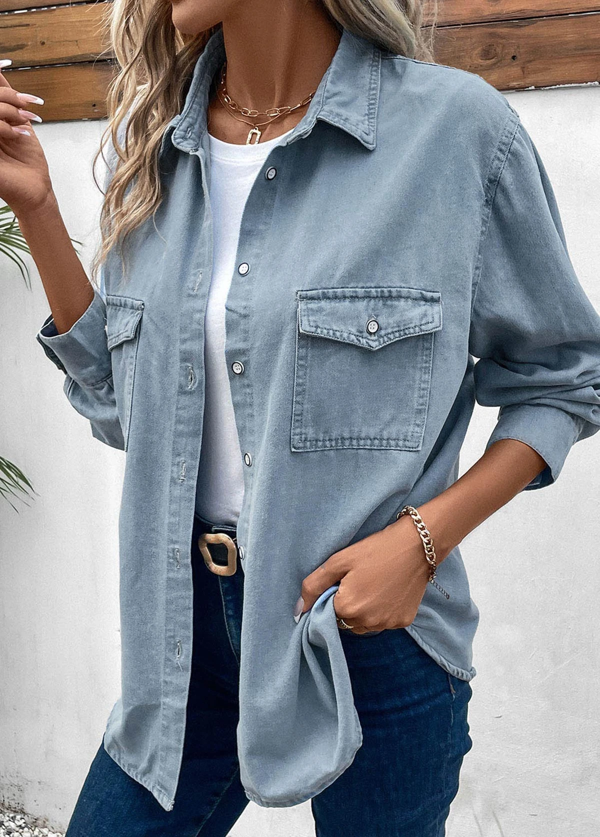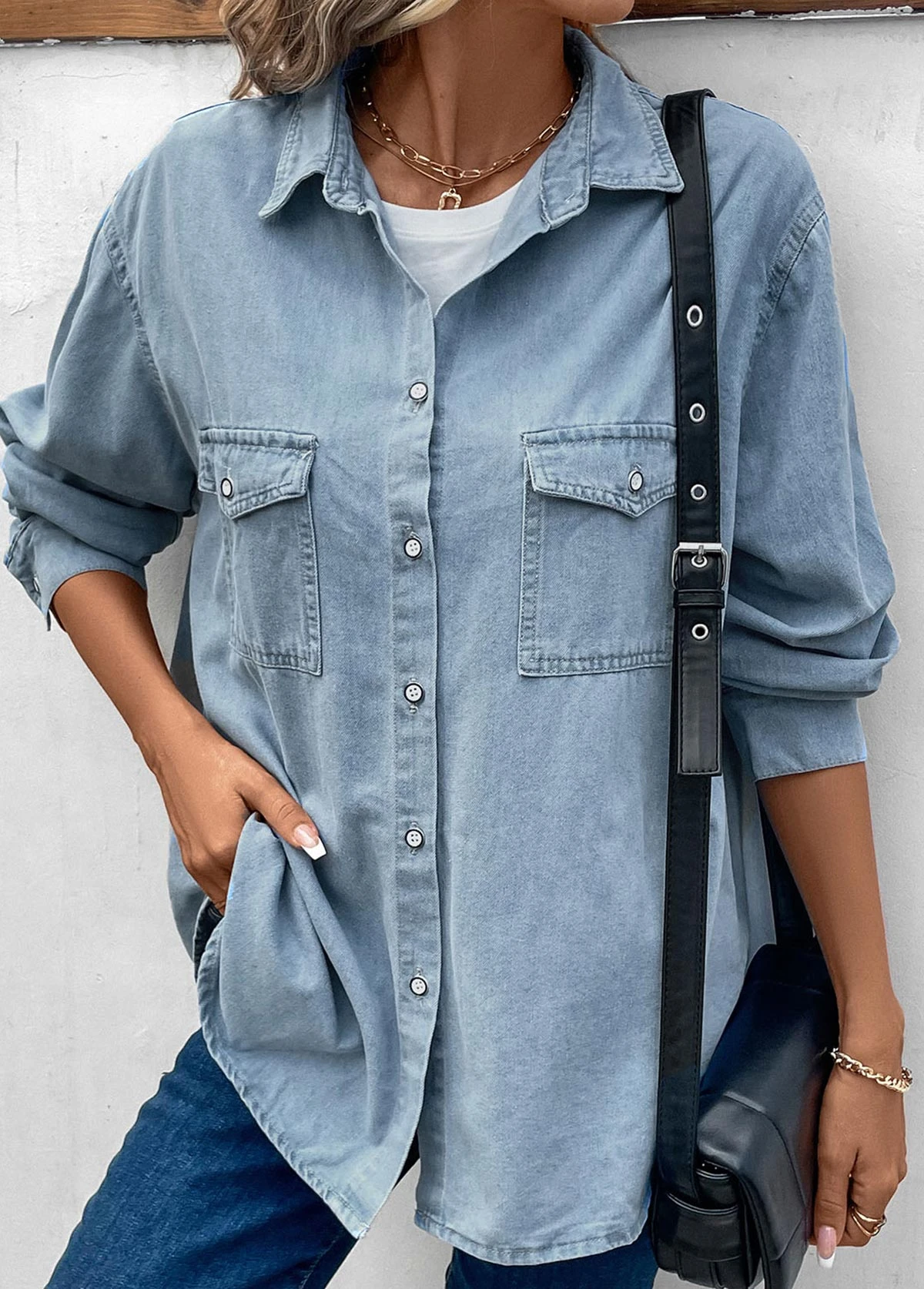 Be the first to review “Dusty Blue Pocket Long Sleeve Shirt Collar Blouse” Cancel reply