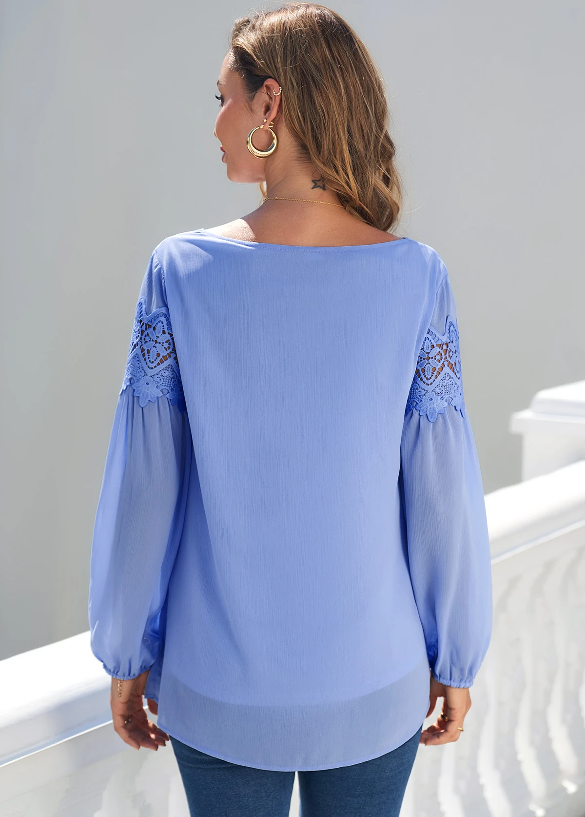 Be the first to review “Lace Stitching Long Sleeve Blue Blouse” Cancel reply