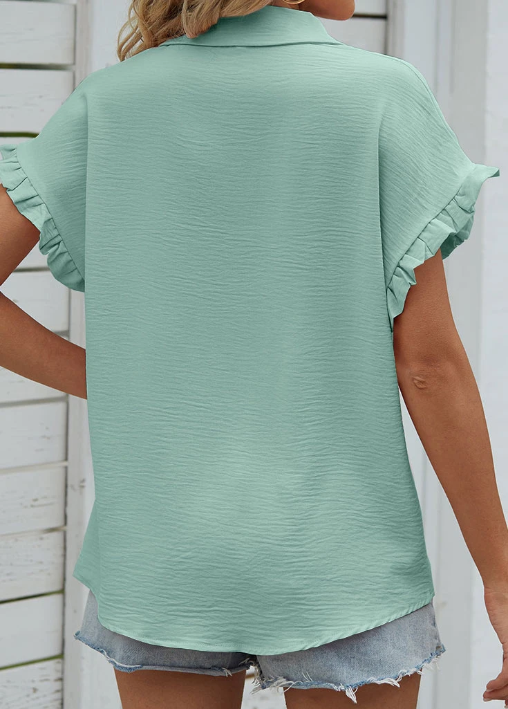 Mint Green Button Short Sleeve Shirt Collar Blouse