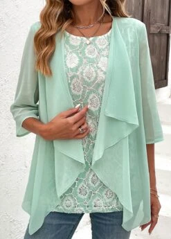 Mint Green Lace Fake 2in1 Blouse
