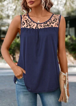 Be the first to review “Navy Patchwork Leopard Round Neck Tank Top” Cancel reply
