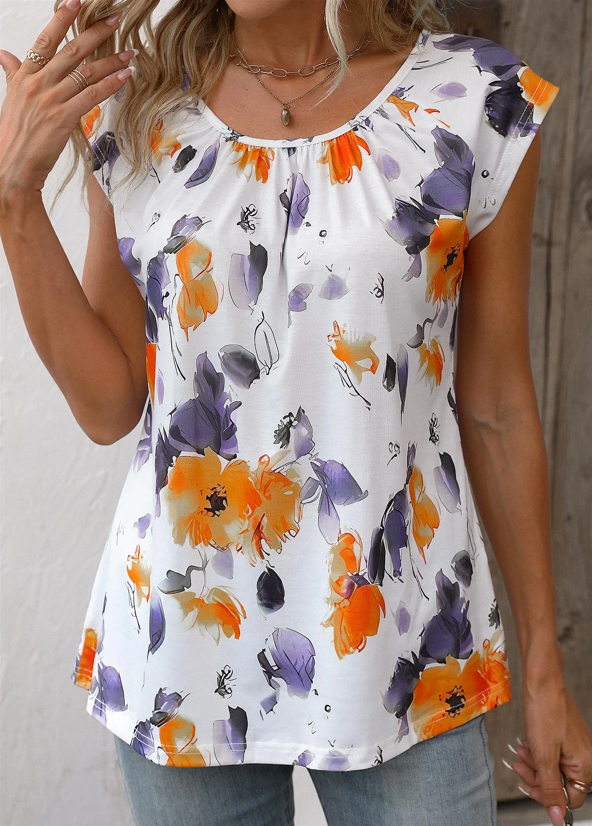 Be the first to review “Orange Ruched Floral Print Short Sleeve Blouse” Cancel reply