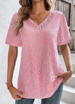 Be the first to review “Pink Lace Half Sleeve V Neck T Shirt” Cancel reply