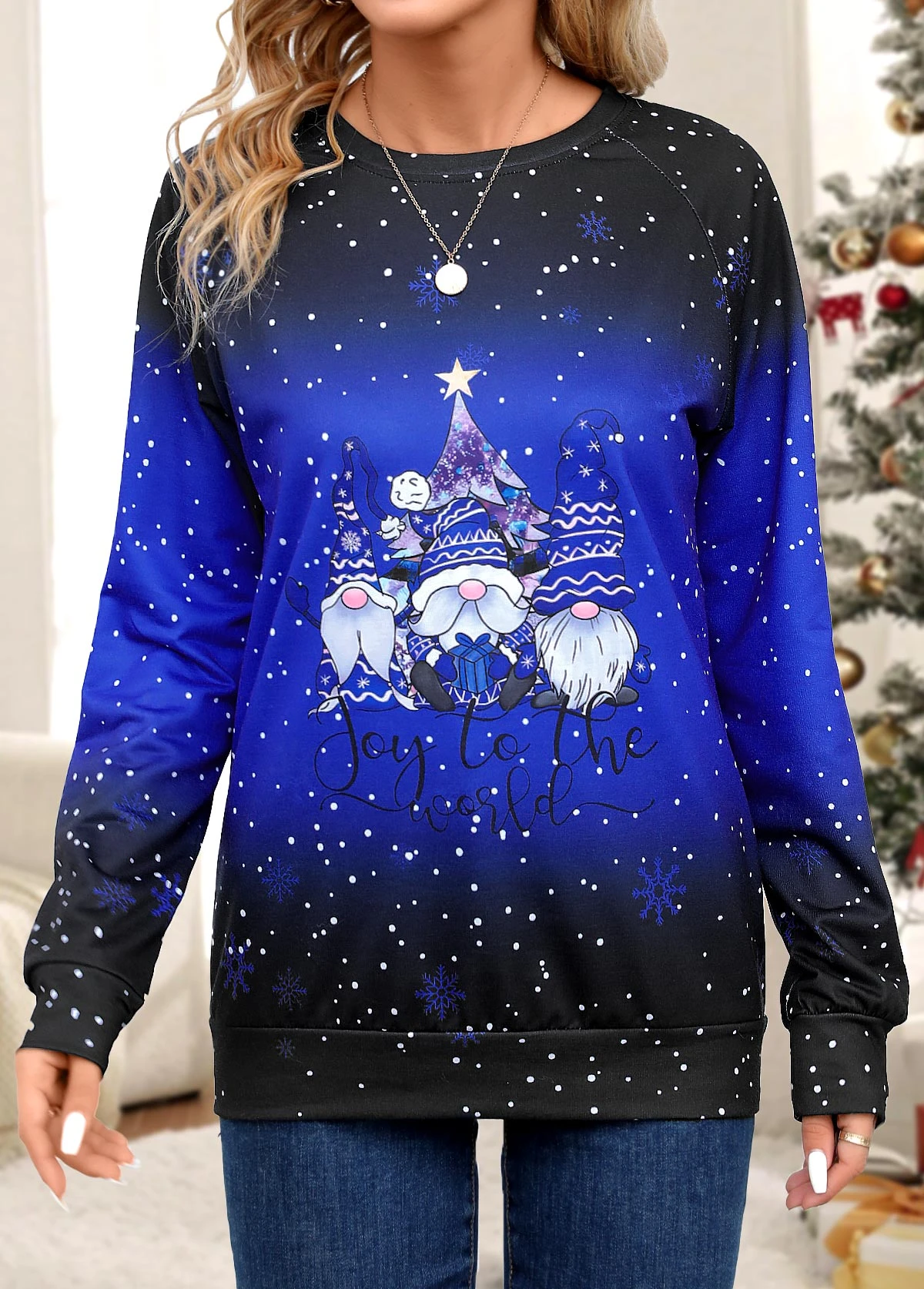 Purplish Blue Santa Claus Print Long Sleeve T Shirt