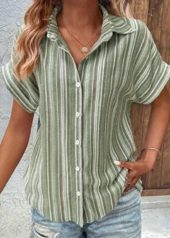 Be the first to review “Sage Green Button Striped Short Sleeve Blouse” Cancel reply