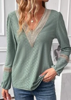 Be the first to review “Sage Green Jacquard Long Sleeve V Neck Blouse” Cancel reply